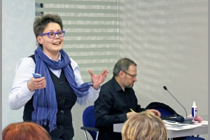 Работа поэтической секции (ведущий – А.П. Расторгуев, поэт, литературный критик, член Союза писателей России, лауреат литературных премий, канд. ист.наук) вызвала большой интерес как поэтов с опытом, так и начинающих В рамках секции прошёл семинар «Альбомный стих как малая поэтическая форма». Для участия в семинаре слушатели заранее присылали свои стихи на заданные темы: «Альбомный стих» и «Я весь осеверённый» - о Севере, Сургуте. Семинар стал обучающим мероприятием, на котором авторы получили рецензии на свои стихи, рекомендации и практические советы по стихосложению. Среди участников и слушателей семинара было проведено поэтическое соревнование - слэм, в котором аудитории (более 50-ти человек) было предложено оценить качество стихов и мастерство исполнения поэтов. Слэм стал самым нестандартным мероприятием конференции. Победу в «Поэтическом слэме» одержала поэтесса Наира Симонян, член литературного объединения «Северный огонёк». Наградами поэтам, занявшим первые пять мест, стали брошюра о жизни и творчестве П. Суханова, пригласительные билеты на киносеансы от партнеров («Галерея кино») и авторские книги А.П. Расторгуева.